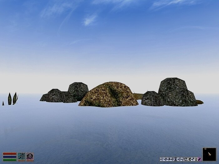 Внутри грот почти полностью залит морской водой. На дне просматриваются водоросли, в их стеблях легко запутаться. Так что не стоит нырять за раковинами, пара жемчужин не окупит истрепанных нервов. Нервы без того потрепят рыбы-убийцы и дреуги, коих там предостаточно. Держаться лучше свода, тем более что под ним периодически попадаются воздушные карманы, где можно отдышаться перед следующим нырком.