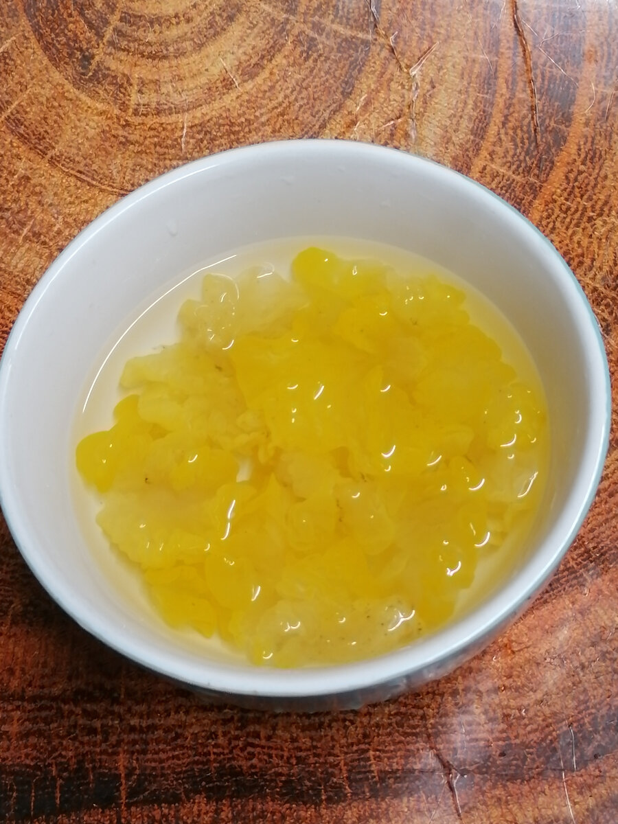 Из чего только не варят варенье: из кабачков, одуванчиков, сосновый шишек и пр. Среди всей этой экзотики мне нравится варенье из грибов. Вкусное, ароматное, красивое. Грибное варенье делают из дрожали оранжевой. Про неё я раньше писала. Повторяться не буду, кому интересно, прочтите. Повезло мне набрать мисочку дрожалки. Почистила я её от лесного мусора и залила водой. Воду сливал несколько раз. Затем я отваривала грибы в течение получаса. Сама дрожалка не имеет ни вкуса, ни запаха. Она наполнитель. Поэтому варенье их неё варится с любыми ягодами и фруктами. Я выбрала яблоко и мандарин. Ингредиенты: Яблоко 80 г, Сок яблочный 70 г, Мандарин 70 г, Грибы варёные ( дрожалка оранжевая) 200 г, Сахар 130 г. КБЖУ: калорийность - 201,8; белок - 1,5; жиры - 0,4; углеводы - 47,8. Из одного яблока я выжила сок. Оставшееся яблоко порезала на маленькие брусочки. С кожуры мандарина сняла верхний слой и мелко её порезала. Затем все смешала и поставила вариться. После закипания варил