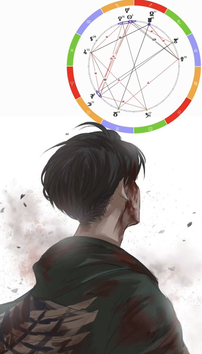 В честь финала «Атака титанов» разбор🥲 Леви 25.12.1974г. (Его год рождения я высчитывала сама). Снова строила космограмму. И так, солнце Леви находится в козероге. ЧТО дает ему: ответственность, требовательность, дисциплинированность, надежность, упрямство, старательность, организованность, со стороны кажется холодным и высокомерным. Это положение награждает его огромной трудоспособностью и умением долго двигаться к назначенной цели. Это тот знак, который понимает, что «выигранная битва это ещё не победа в войне», прирождённый стратег. Такой человек любит порядок во всем и чистоту!! Всё должно быть по полочкам. В работе аккуратен и методичен(даже клинки во время боя протирал от крови). Он четко знает чего хочет. Всегда готов к тяжелой борьбе и найдет решение даже в трудной ситуации. Он заставит работать любого(вспомните серию с уборкой). Если договорились, значит все должно быть по договорённости. Он умеет сохранять хладнокровность и не даёт волю чувствам, склонность к одиночеству.
