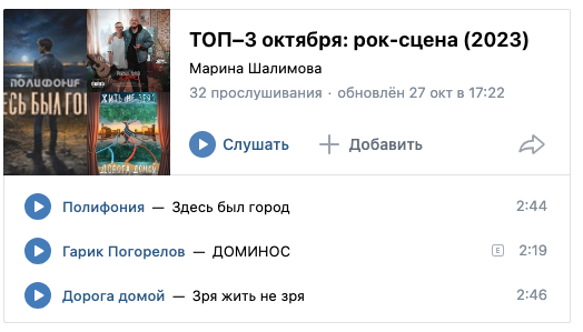 Pop rock (Донецк) С такой музыкой жить всё-таки не зря. Наши топы это подтверждают… На третье место в октябрьском чарте эксперты поставили отличный донецкий рок старой закалки. Весь альбом заслуживает внимания, а мы слушаем почти одноимённую песню, как его кульминацию. Красивая работа со всех ракурсов, которая слушается на одном дыхании. Ответственно рекомендуем! 2 место. Гарик Погорелов — ДОМИНОС (из альбома «РАНЬШЕ БЫЛО ХУЖЕ»): 26 баллов