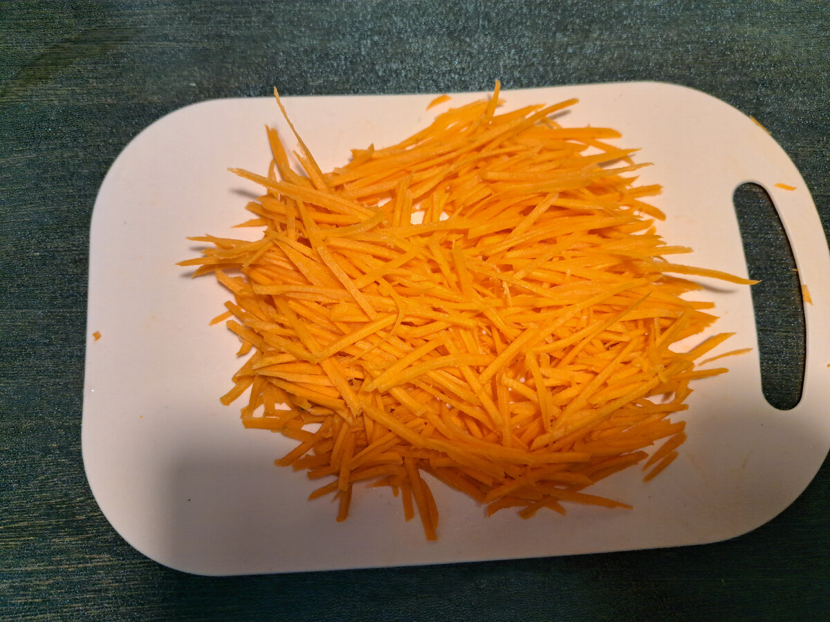 Попробовав этот салат, гости замучают вас вопросом: а что в него входит? 🤭 В оригинале рецепта в составе были просто яйца, но я решила внести изменения и не ошиблась, все были удивлены Нам понадобятся: Лук и морковь нарезать соломкой ( я морковь тру на терке, для "корейской" моркови) Обжарить их на сливочном масле до готовности Отваренную в подсоленной воде печень нарезать соломкой Маринованные огурчики так же соломкой, я и их натерла на терке Ну и теперь приготовим тот самый секретный ингредиент: Я их обжаривала на той же сковороде после лука с морковью Блинчики после остывания нарезать на полоски и затем соломкой В салатнике смешиваем все наши нарезанные продукты Добавляем соль и перец по вкусу и заправляем майонезом Наш салат с секретом готов 😋 Приятного аппетита!