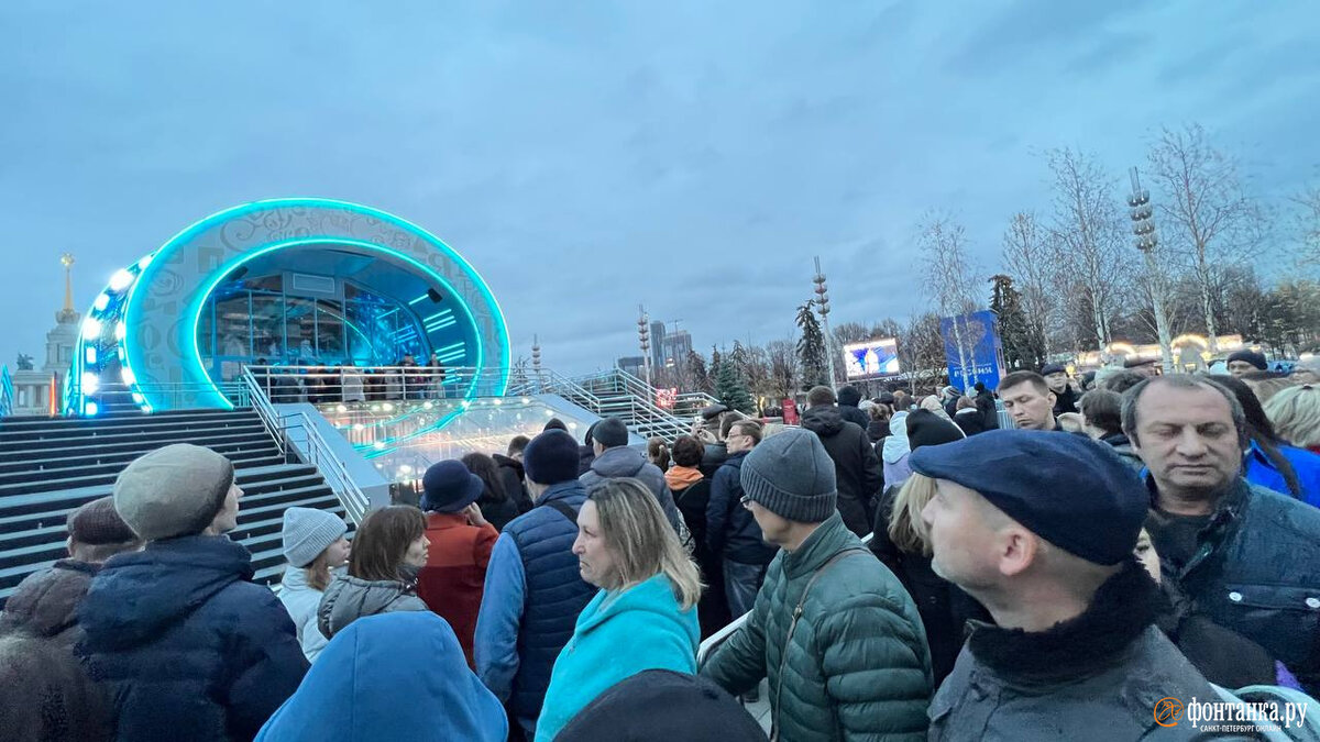Не так страшна очередь, как ее хвост. Сколько надо выстоять, чтобы увидеть достижения России на ВДНХ Второй день работы выставки «Россия» на ВДНХ оказался не менее многолюдным, чем первый. У центральных ворот даже случилась пробка. Корреспондент «Фонтанки» выяснила, сколько времени придется провести в очередях в самые популярные павильоны и зачем вообще туда стоят. Уже на выходе из станции метро «ВДНХ» становится понятно, что легко не будет. Несмотря на выходной, людей очень много, как в час пик в будни. У центральной арки, за которой открывается вид на круглое жерло галереи «Достижения России», затор. Очередь в галерею, обставленная металлическим забором, заворачивается несколько раз и уходит вдаль. «Время ожидания входа на экспозицию — полтора часа!» — предупреждает меня девушка-волонтер. Она говорит, что самые интересные павильоны — «Атом», Роскосмос, «Регионы России», какие очереди там, неизвестно, но народу очень много. У стоящих в голове очереди другие сведения. «Мы около полчаса