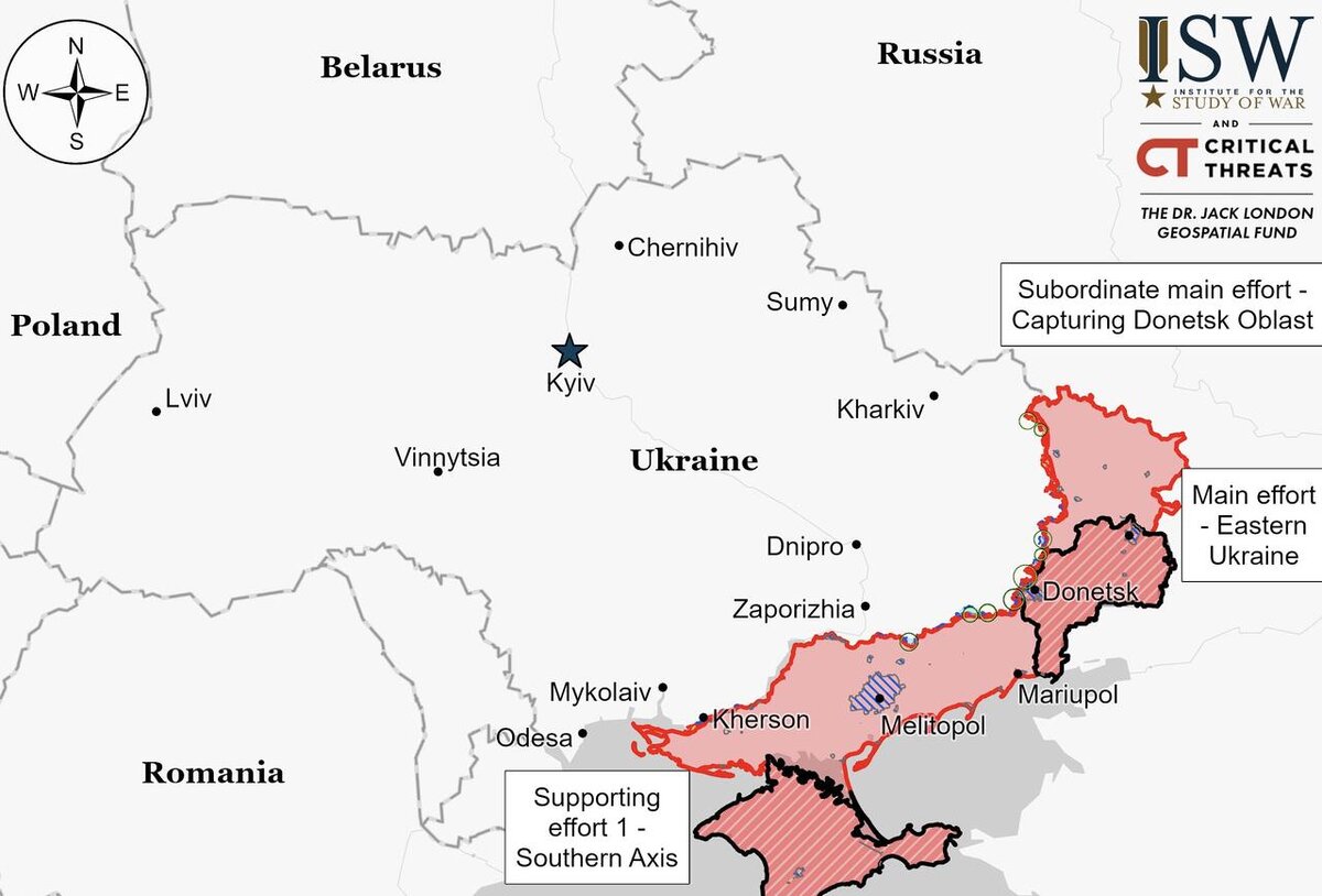 С учетом того, что внимание всего мира прямо сосредоточено на столкновениях между Израилем и боевиками Газы, безумная надежда на изгнание российской армии с занятых ею территорий испарилась... Официальные лица США и Европы начали тихо консультироваться с Украиной о потенциальных уступках, которые могли бы положить конец СВО. Некоторые разговоры произошли во время октябрьской встречи Контактной группы по обороне Украины, в которой приняли участие более 50 правительств, присоединившихся к этой стране. Даже украинский генерал Залужный признал, что прорыва не будет, и ситуация на поле боя находится в тупике. Нью-Йорк Таймс охарактеризовал замечания Залужного как «первый раз, когда высокопоставленный украинский командир сказал, что боевые действия зашли в тупик». Детальный анализ показал, что после украинского (так называемого) контрнаступления, "Россия теперь контролирует почти на 518 кв. км больше территории по сравнению с началом года." Территориальные завоевания России близки к до