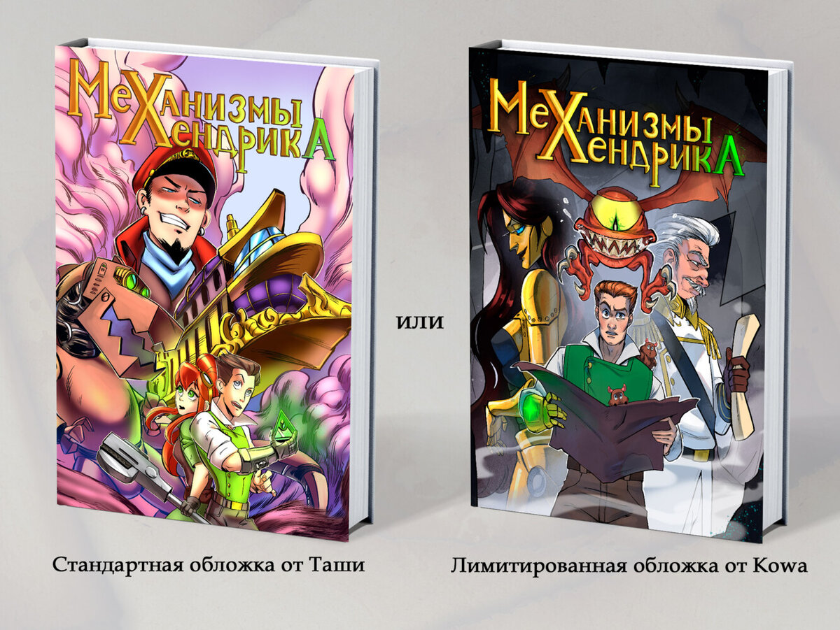"Механизмы Хендрика". Графическая история. Драйк и Таша/Татьяна Ларина и Татьяна Титова. Химки: ИП Коростелева А. А./ «Комикс Паблишер», 2023. - 288с. Тираж 1000 экз. Оформление книжки интересное: яркая обложка с лаком, запечатанные форзацы, картинка-спасиба от девчонок... 🎨 ГРАФИКА Цветная, очень яркая. Персонажи гротесковые, их мимика местами типичная для манга - перекошенные рты с белыми зубами, выпученные глаза. Весьма небрежна в исполнение, особенно в начале - такое ощущение, что отдельные фреймы делали много позже - чувствуется иная манера. О колорите работы говорить не приходится - по детски яркое сочетание цветов... 📖 ИСТОРИЯ Крауд-проект именовался «Комедийный стимпанк-комикс Механизмы Хендрика». Я здесь ни… комедии, ни стимпанка, ни политических заговоров, ни государственных переворотов не увидел - сплошное «введение в заблуждение», абсолютно невнятная история. ИМХО. Вот не углядел я за всей этой суетой... сценария, абсолютно :(. 🔥 ВЫВОД Я книжку эту трижды бросал - не ин