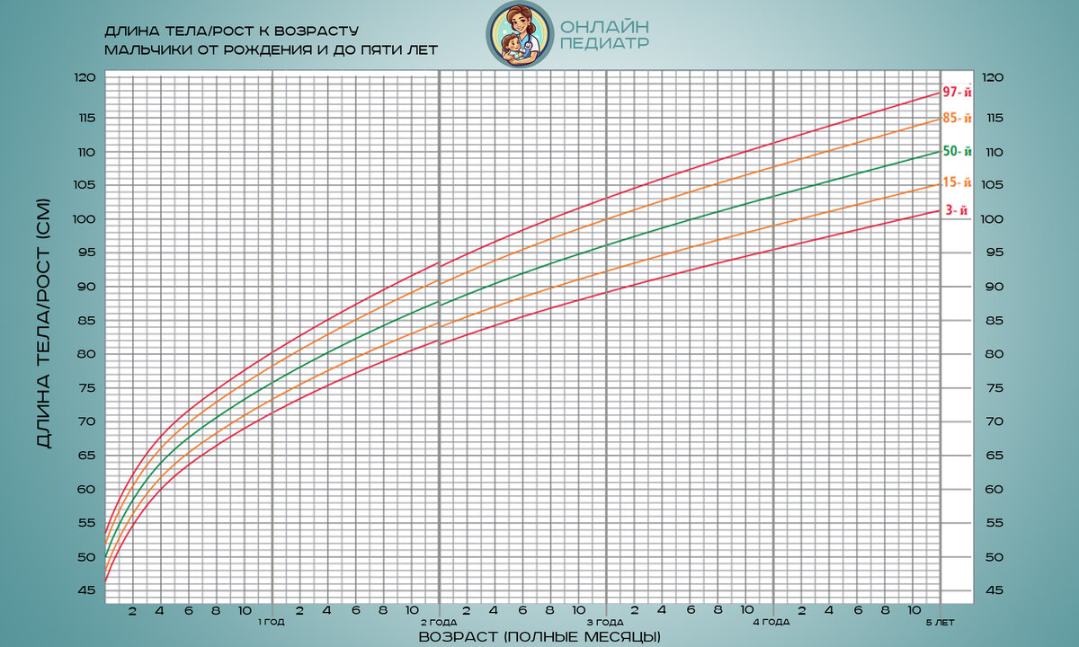 Графики роста и веса для мальчиков (от рождения и до 5-ти лет)