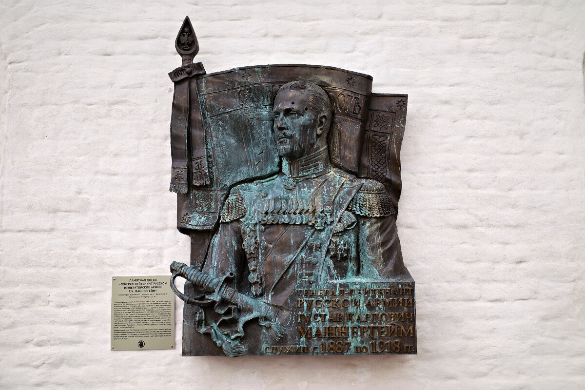 "Мемориальная доска генерал-лейтенанту Густаву Маннергейму является почетным и символичным знаком, установленным в память о выдающемся финском военном и государственном деятеле. Густав Маннергейм был генерал-лейтенантом и командовал финской армией во время Войны продолжения (1941-1944), а также во время Войны Лапландии (1944-1945).