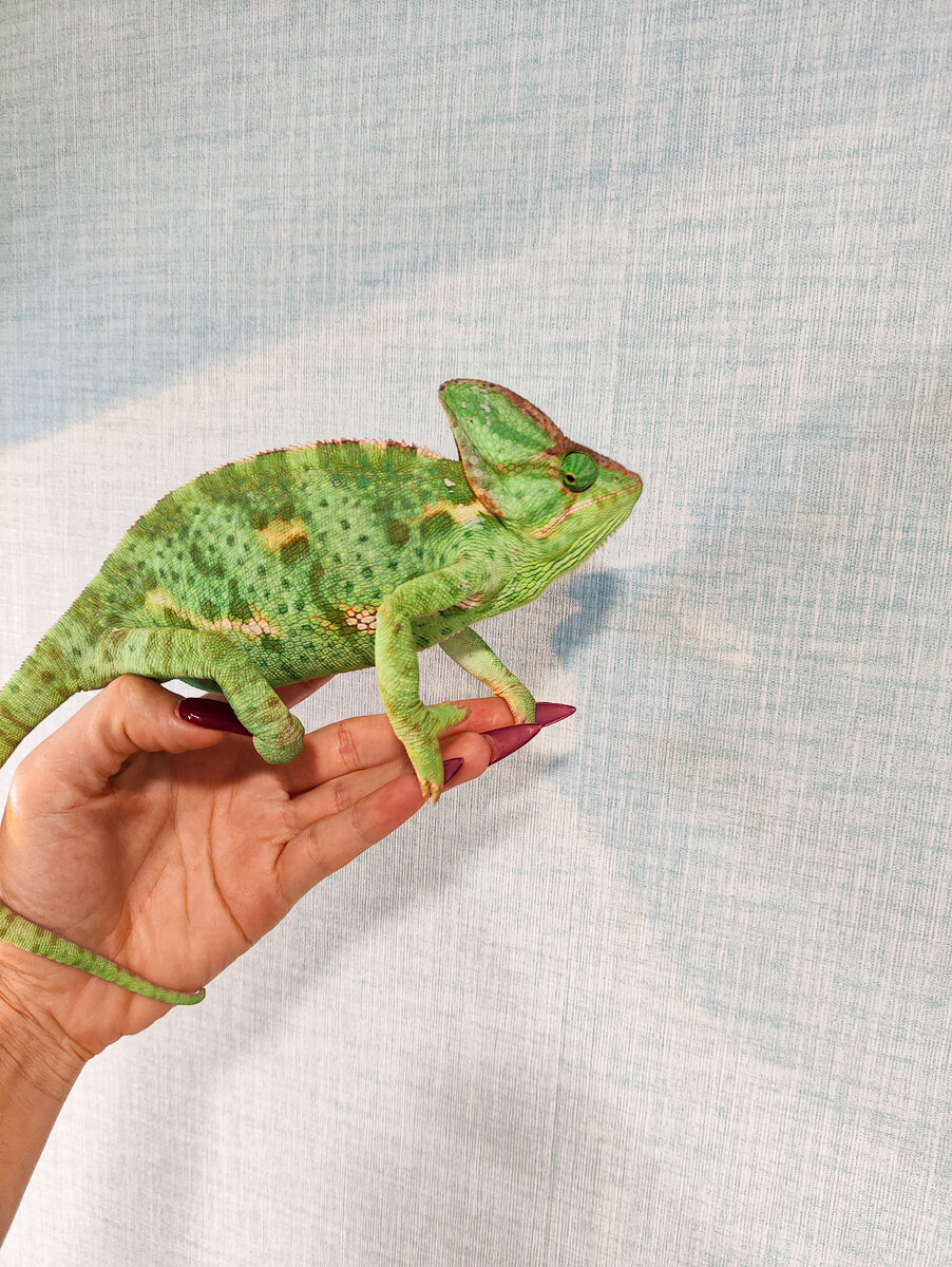 Наверное,нет человека,который бы не услышал об уникальной способности хамелеонов менять свою окраску под цвет окружающей среды. Так вот! Этой способности у них нет. Хамелеоны действительно могут менять цвет,но это зависит от :настроения, температуры в террариуме, овуляции/беременности. Хамелеоны мне напоминают сварливых,степенных стариков. А вы знали,что инкубация их яиц может занять как 5,так и 9 месяцев?