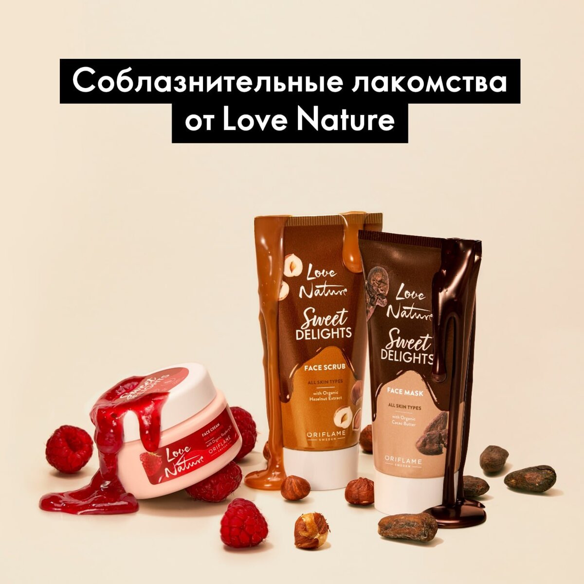 Звучит вкусно, а что же это на самом деле? Сейчас расскажу, а ты пока подписывайся, что бы не пропустить новинки нашего каталога 😉 Увлажняющий крем для лица с органическим маслом малиновых семян Love Nature ● В его состав входит богатое антиоксидантами масло семян малины, в котором свежий фруктовый аромат сочетается с увлажнением и защитой от пересушивания. ● Кремовая формула на 95% состоит из ингредиентов натурального происхождения и прошла дерматологические испытания. ● Подходит для всех типов кожи. ➤ Код продукта: 46540 Обновляющий скраб-мармелад для лица с органическим экстрактом лесного ореха Love Nature ● Его сочная формула с текстурой мармелада обогащена органическим экстрактом лесного ореха, который мягко отшелушивает сухую кожу, удаляя загрязнения и омертвевшие клетки кожи. ● Гурманский скраб на 95% состоит из ингредиентов натурального происхождения и прошёл дерматологические испытания. ● Подходит для всех типов кожи. ➤ Код продукта: 46541 Успокаивающая маска для ли