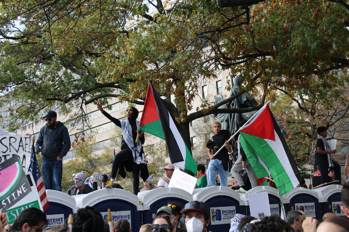 В субботу в 4 ноября, Вашингтоне на Фридом Плаза, неподалёку от Белового Дома, прошла грандиозная манифестация в поддержку народа Палестины. По некоторым оценкам в ней приняли участие триста тысяч человек.