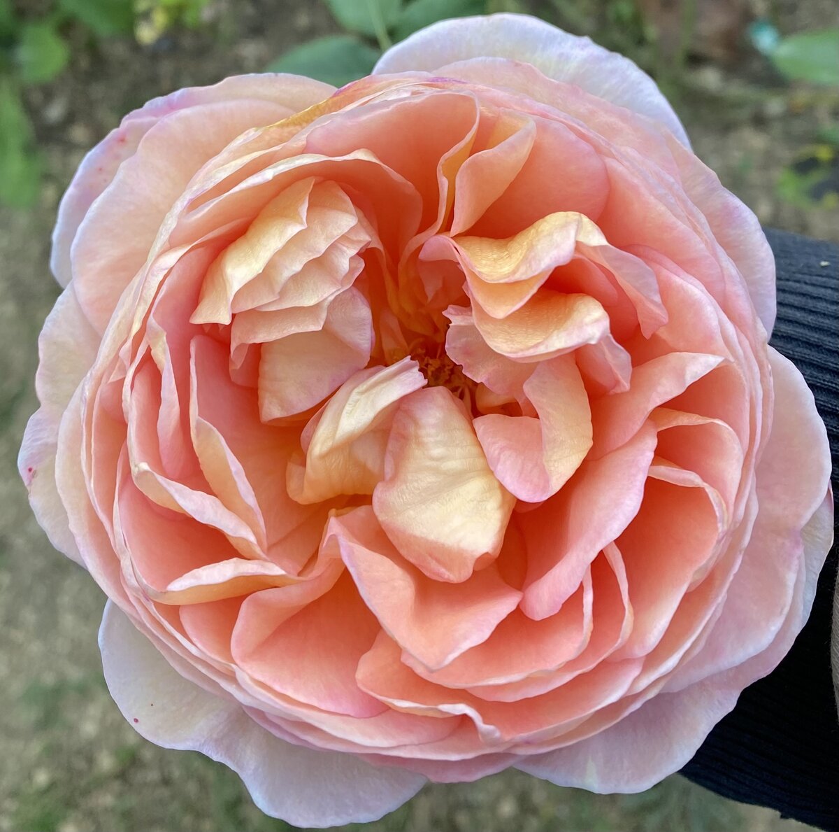Придумалось название для посадочного места №1. «Верхний розарий». В центре цветника высажено 5 роз от Сергея Овчарова. 1.Абрахам Дерби 2.АндреТуркат 3.Крокус Роза 4. Леди Гарденер 5. Строберри Хилл Высажены плотнее, чем хотелось бы. Сантиметров 60-70 друг от друга. 1.Абрахам Дерби 2.Андре Туркат не сфотографировала в «толпе» 3.Крокус Роза 5 фото Крокус чаще попадает в кадр. Форма цветка и переливы цвета в разные сезоны, времена(весной, летом, осенью), время суток, погодные условия так и просятся запечатлеть. Больше всего ее фотографий. 4. Леди Гарденер не сфотографировала в «толпе». 5. Строберри Хилл. Очень много цветов в кистях. Нуждается в опоре, красивые поникающие побеги. На этикетке питомник указывает группу розы, ориентируя, сколько места необходимо спланировать при посадке. Проверяем правила посадки. Солнца и дренажа хватает, даже от ветра, более-менее… Высажены с южной стороны дома. Места им не хватает! Сомкнулись олимпийскими кольцами. Два розовых куста точно