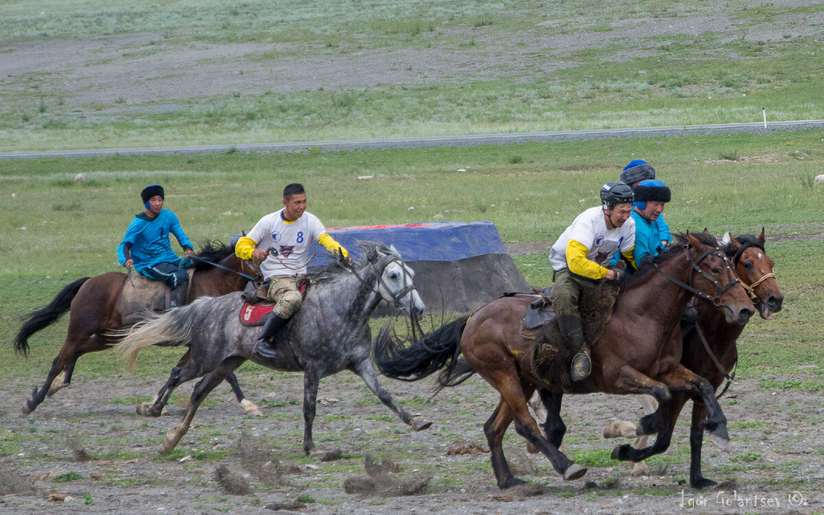 В августе ещё раз повезло побывать на этой интересной игре. В Горный Алтай она пришла не так давно, но очень быстро стала популярной. Цель игроков, находящихся на специально обученных верховых конях — поднять с земли или отобрать у соперника тушу козла весом 30-40 кг без головы, копыт и нижних частей ног и закинуть ее в своеобразные "ворота" противника, символизирующие праздничный казан или той казан. Основное слагаемое успеха в кок-бору – слаженная работа и взаимопонимание наездника и его коня. Как говорят сами игроки, удача в игре на 80 процентов зависит от коня и только 20 от умения всадника. Вы только посмотрите, как кони участвуют в борьбе за выгодную позицию, оттесняя соперника и давая возможность всаднику поднять улак (тушу козла) с земли. Кок-бору требует способности быстро ориентироваться в сложной ситуации, быть смелым, сообразительным и ловким. Большинство игроков на Алтае — пастухи, которые на время соревнований оставляют свои стада и спускаются с гор. Тем не менее, молода