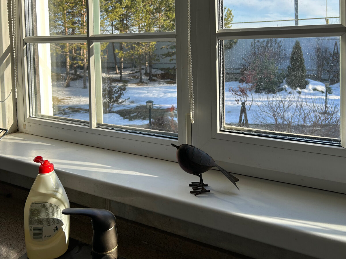 Когда я мою посуду на даче, мне очень нравится смотреть в окно. Маленькие синички перелетают с ветки на ветку. И что они ищут там, на соснах? Под деревьями черно-белая сорока важно расхаживает, как у себя дома. Но она и есть у себя дома, на одном из деревьев огромное гнездо, в котором весной сороки вывели птенцов. Иногда прилетает дятел. Нарядный, с красным подхвостьем и ярко-красным затылком. Это большой пестрый дятел, самый распространенный вид в наших лесах. Он долбит ствол в поисках пропитания, и его стук раздается далеко вокруг. Сегодня утром все деревья и кустарники покрылись волшебным инеем. Словно волшебная палочка коснулась и заколдовала сад. Мы так надеялись, что снег - это ненадолго. Прогноз погоды обещал плюсовую температуру на ноябрьские праздники. Но увы - снег похоже с нами до весны. Кстати, на старых фотографиях с демонстраций родители одеты очень тепло, в зимних шапках и пальто, а я даже в искусственной шубке и мутоновой шапке. Вы читали книгу "Поллианна" Элеоно