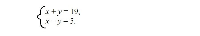 Решение задач с помощью систем уравнений Уважаемые мамы и папы, дедушки и бабушки! Предлагаю вам повторить решение задач с помощью систем уравнений способом подстановки на примере задач № 1099, 1103 и 1105 из 8-го издания учебника по алгебре для 7-го класса авторов Ю. Н. Макарычева, Н. Г. Миндюк, К. И. Нешкова и С. Б. Суворова под редакцией С. А Теляковского. Задача 1099: В фермерском хозяйстве под гречиху и просо отведено 19 га, причём гречиха занимает на 5 га больше, чем просо. Сколько гектаров отведено под каждую из этих культур? Решение: Пусть под гречиху отведено x га, а под просо – y га. По условию задачи всего было засеяно 19 га, поэтому x + y = 19. Известно, что гречиха занимает на 5 га больше, чем просо. Значит x – y = 5. Чтобы ответить на вопрос задачи, надо найти такие значения x и y, которые удовлетворяют как первому, так и второму уравнению, т. е. удовлетворяют системе: Решить эту систему можно либо способом подстановки, либо способом сложения. В данном случае способ слож