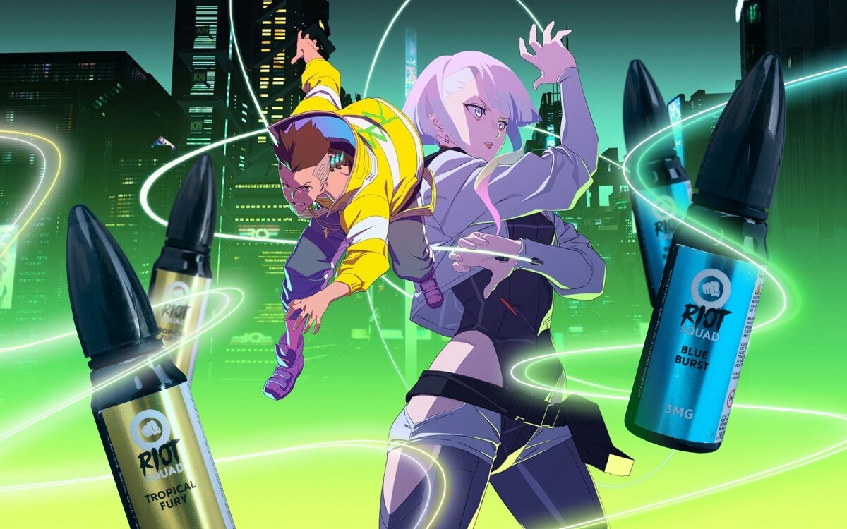 Премиальные жидкости Riot – идеальный способ вспомнить культовое аниме Cyberpunk: Edgerunners!