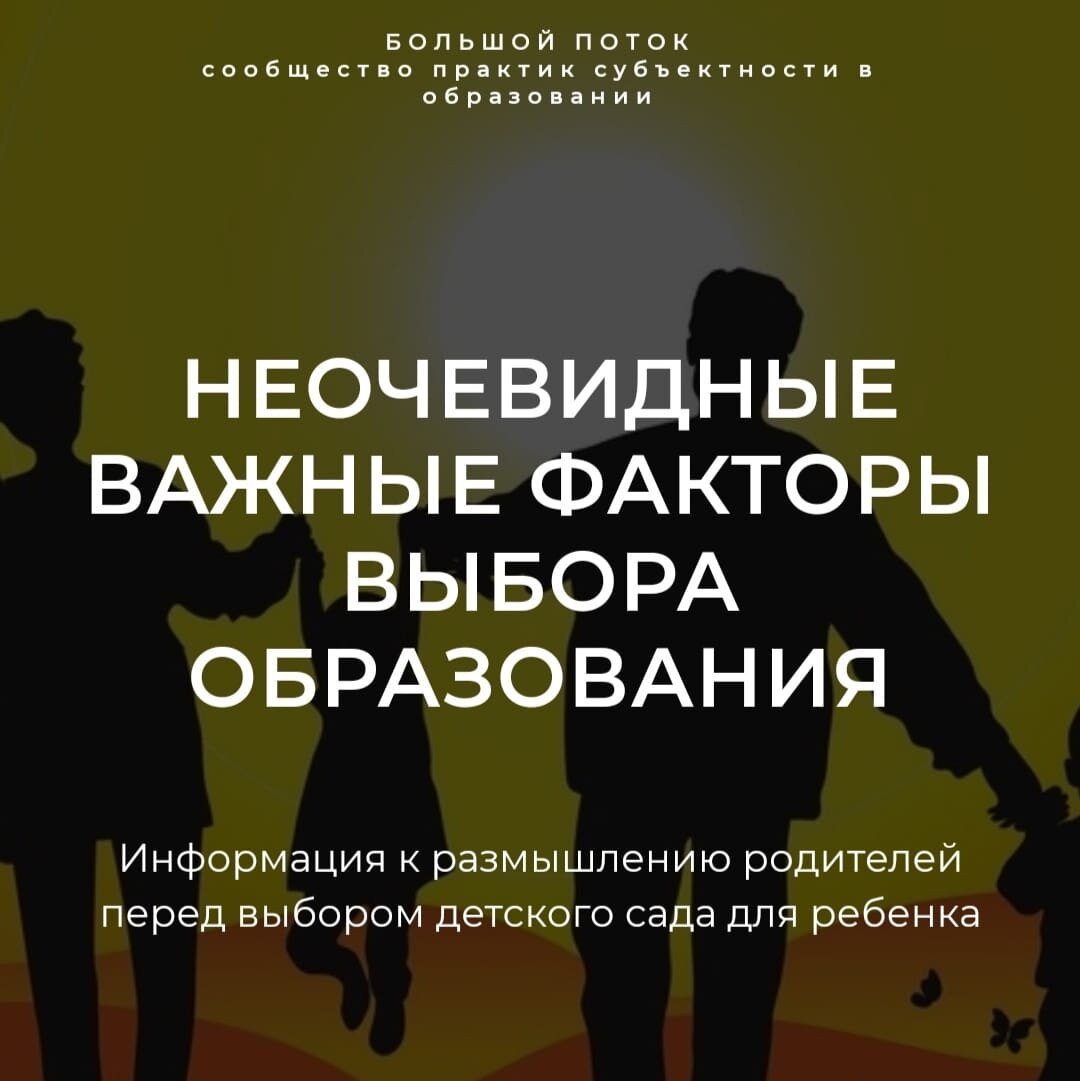 Об этом ничтожно мало говорят педагоги и, конечно, практически не говорят родители. Поэтому решение о выборе сада или школы принимается, к сожалению, исходя из очень локальных выгод, а иногда и бредовых мифов.