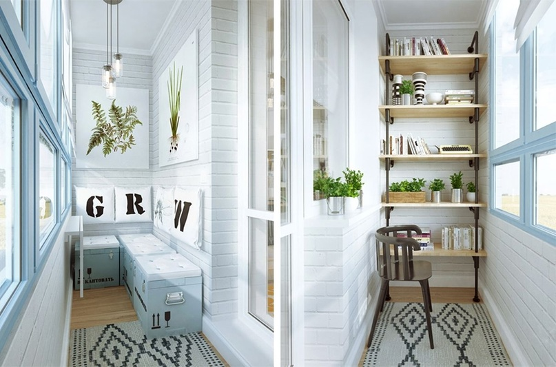 Старайтесь создать единый стиль у балкон с комнатой или, по крайней мере, плавный переход между ними. Уберите порог, сделайте единое напольное покрытие, а цвет стен может оставаться разнообразным. Чтобы ваш маленький балкон казался просторнее, освободите