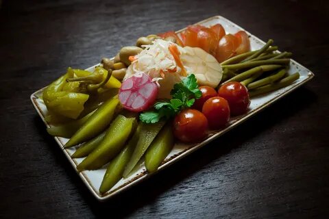- Соленья. К соленьям мы отнесём, овощи засоленные по всем правилам, без кислот. В отличие от маринованных овощей, к ним не добавляется уксус, который раздражает стенки желудка и облегчает процесс опьянения. Засоленный овощи ускоряют обмен вещество, помогают пищеварению. Кстати выпить такой рассол на утром будет лучшим решением, он быстро восстановить водно-солевой баланс.