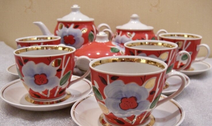Полонский фарфоровый завод СССР, чайный сервиз «Голубой цветок». Радостный, впечатляющий…