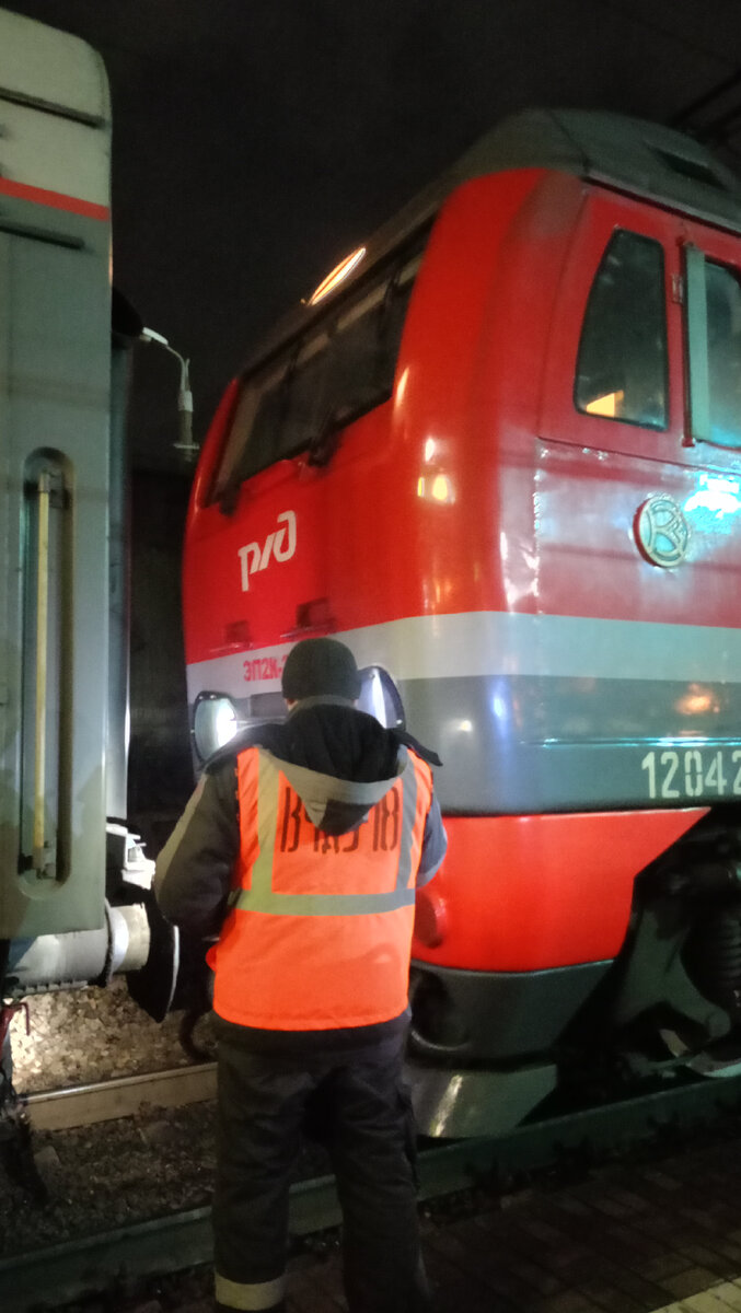 Это было в Туле. Стояли 47 минут. Правда при 9 градусах я не догуляла до конца. Но бодро так пошагала по перрону. Увидела момент как к нашему составу новый локомотив прицепили. А так гулять в темноте не очень интересно. Вот когда остановка на первом пути, то гораздо интереснее. Или когда светло и тепло. Тогда можно и по подземному переходу в город пойти. Так было в прошлые мои поездки через Тулу. Не поверите, но у меня снова сменился сосед. Пока гуляла на улице. Пришла и вижу вместо юноши с наушником, юношу без него, но очень лохматого и кудрявого Главное, что лежит в той же позе. Не ожидала перемены. Дааа - место номер 7 явно мужское. Этот матрас постелил, но бельë не застилает. Предыдущие лежали без матраса вообще. Я уже собираюсь спать. Москву точно просплю в час ночи. Не буду гулять. В Бологое в 6:26 тоже не буду вставать. В 11:40 ( это отличное время для прибытия) прибуду в Петербург. В Ельце погуляла. Елец порадовал - дождя не было. Прохладненько, но не холодно. И надо с