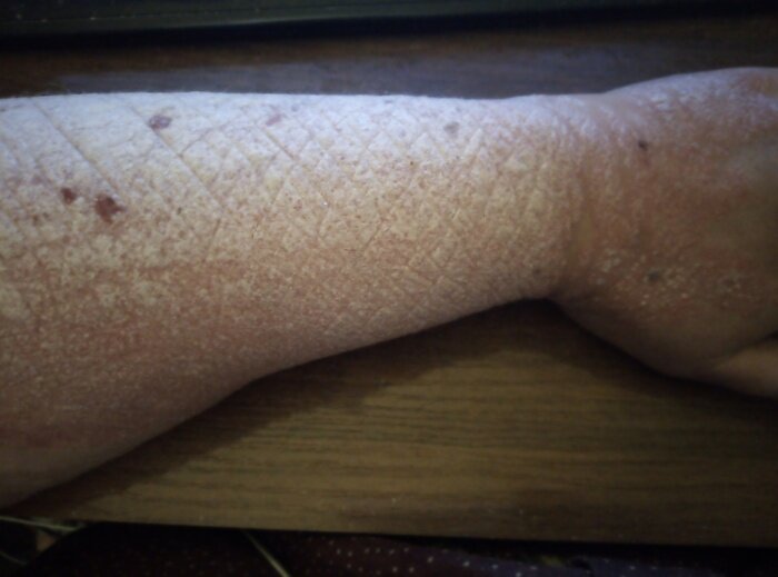 Не смотря на мази, уколы и гормональную терапию примерно к 25 годам я стала почти рептилоидом причем крайне жирным, и если бы это была просто чешуя я бы пожалуй смирилась. Но эта дрянь чесалась, а псориаз чешется зверски, это примерно как укус комара только везде и постоянно. А ещё чешуйки сыпятся. На первом месте работы я несколько раз в день подметала под своим стулом. Но коллектив был молодой, на меня косились, мне начали выговаривать о том что я своим видом и поведением мешаю, в общем я свалила на удаленку. Лишила себя части стресса.