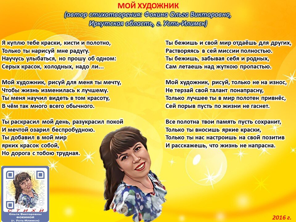 Мой художник (стихи Ольги Фокиной, Усть-Илимск)