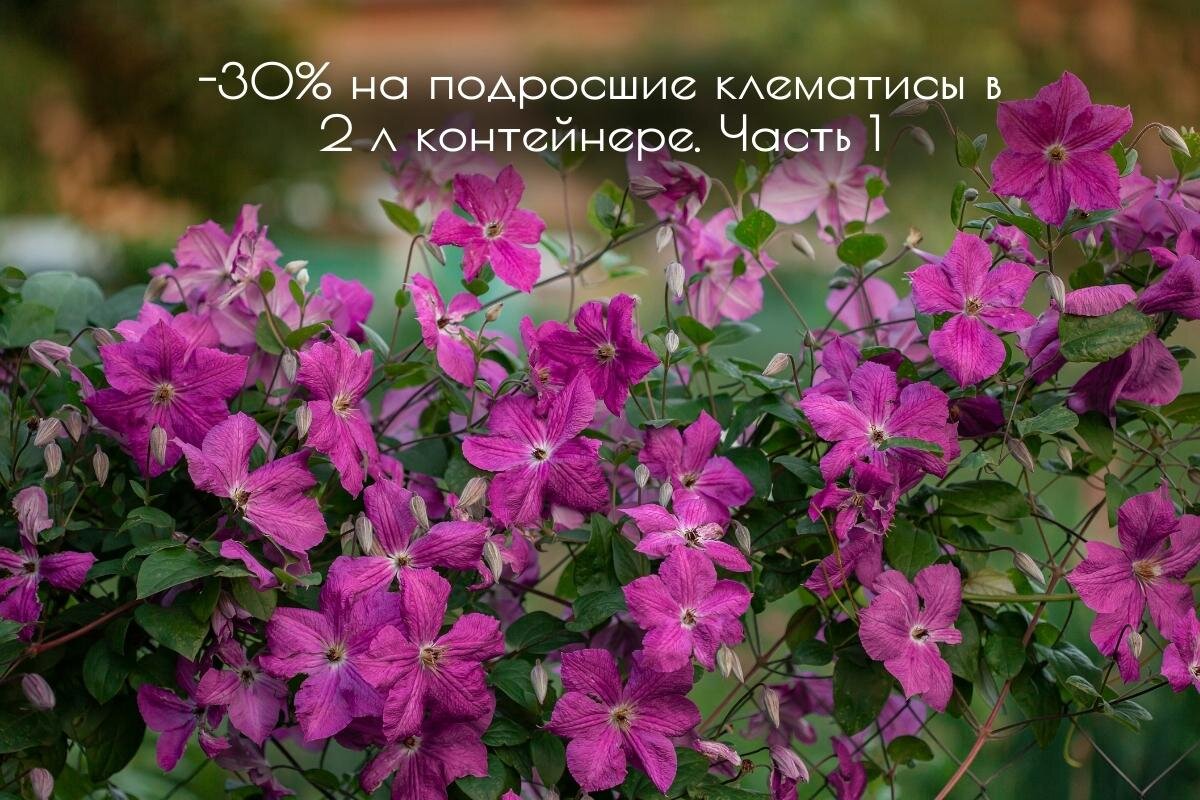 Если расплести их лиану, то выйдет от 2х метров и более. Однако, для отправки саженец обрезается до 50 см, чтобы листья и стебли не вытянули из корней всю влагу. При САМОВЫВОЗЕ растение остается в целости. Жакмана Пурпуреа Трудно равнодушно пройти мимо буйно цветущих посадок данного клематиса. Каждый обязательно остановится, чтобы полюбоваться роскошными цветками диаметром до 10 см, которые сплошным ковром покрывают растение. Примечательно, что растения этой группы формируют бутоны только на молодых побегах. Цветущие лианы можно встретить с конца мая до середины осени. Супер Нова (голландский) Цветки формируются 4-6 волнистыми чашелистиками со слегка загнутыми краями, по центру заметны белые прожилки. Последний штрих роскошному цветку наносят темно-фиолетовые тычинки. Цветет голландский клематис Super Nova долго и обильно. Лепестки ложатся плоско, создавая невероятные узоры. Цветение продолжается с июня по сентябрь. Руж Кардинал Позднецветущий сорт клематисов, зацветает в июне месяце и