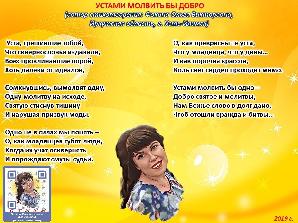 Устами молвить бы добро (стихи Ольги Фокиной, Усть-Илимск)