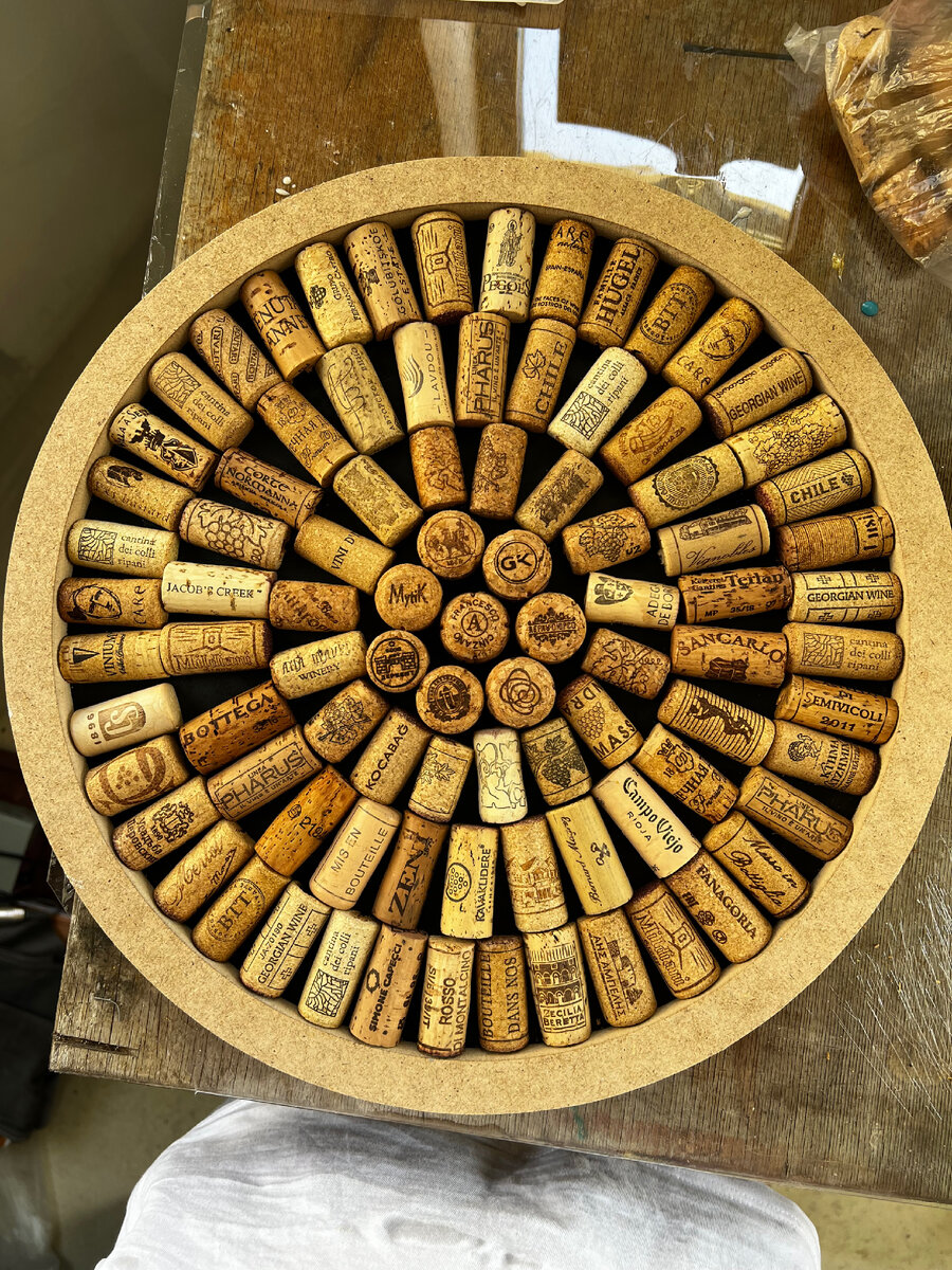 Здравствуйте !👋🏻 Ко мне обратилась девушка с просьбой сделать часы для близкого человека. Пробки от вина разных стран и марок копили долго всей семьей. Для меня такая задача с пробками была первой, и сроки были сжатыми, праздник, день рождения, был через 5 дней. Заказ был принят, надо как-то успевать 🤔 Для начала отсортировали пробки, сделали раскладку и согласовали с заказчиком. Нарезав пробки нужного размера приступили к заливке. Первый слой был грунтовочным, чтобы из пробок вышел воздух и они закрепились на своих местах. Через 8 часов залили основной состав смолы и оставили до полного отвердевания. Как только смола отвердела приклеили цифры и закрыли все финишным слоем. Затем установили стрелки, часовой механизм и наши необычные часы готовы. Результат был шикарным, заказчик доволен. Именинник был в восторге. Такие подарки индивидуальны и очень ценны.