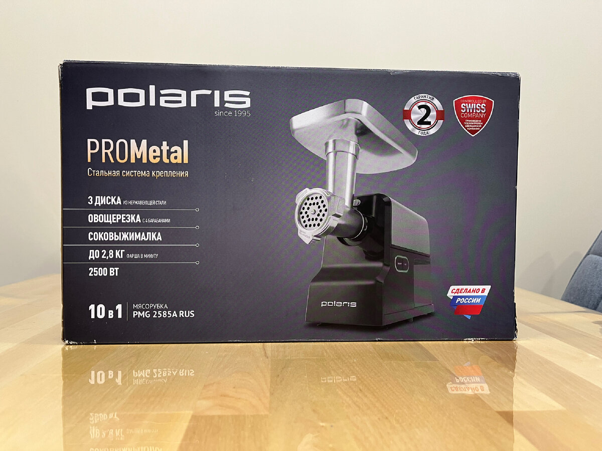 мясорубка Polaris PMG 2585A RUS. Она очень многофункциональная и сочетает в себе классическую мясорубку и овощерезку, да ещё это вместе 10 в 1 и в компактном исполнении от брэнда Поларис.