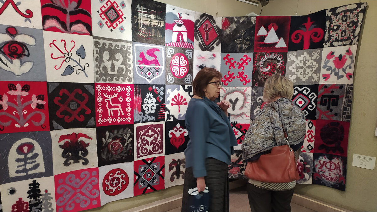 Удивительно, во что может превратиться кусочек шерсти! Вы пробовали валяние, хоть мокрое, хоть сухое? Сейчас покажу все варианты - и ковры, и картины, и одежду, и сумки-шапки-варежки, и игрушки, и украшения... Я обошла два зала выставки по периметру, снимая экспонаты, ссылка на видео чуть ниже. А начать хочу со интересного знакомства. Наталия Ильина - мастер художественного войлока, из Костромы. Выше - еë работа "Зодиак". Ниже мы, костромские красотки, в петербургских шляпках. Шляпки можно было примерять и фотографироваться совершенно свободно. Рядом с ними был постоянный аншлаг и количество чудо-шляп сильно уменьшилось к третьему дню выставки. Не могу удержаться и добавлю "шляпный" скрин со странички Натальи ВКонтакте: Именно Наталия написала мне о выставке, ей все наши благодарности, да? Давайте именно с работ Наталии и начнëм осмотр выставки. Спасибо Наталии за приглашение, поздравляю с участием в таком масштабном проекте. Пойдëм, посмотрим, что здесь ещё представлено.