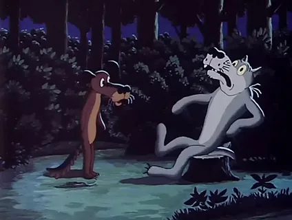 Озираясь воровато Волк голодный шёл к деревне, Глядь, идёт молодцевато Пёс, со стороны харчевни. *** Встретились, остановились Мигом вспомнив всё былое, И хвостами навострились – Положенье непростое. *** "Помнишь как тогда расстались?" – Процедил волчара первым, "Крепко мне в тот раз досталось" Заскрипев зубами нервно. *** "Но и ты там постарался"– Пёс сказал ему в ответ, "Я ж за всю деревню дрался, Вот и взял с собой кастет." *** "На вот! Вижу ты с дороги. Подкрепись-ка пирожками. Мы с тобой же не бульдоги, Дам ещё котлет с рожками!" *** Волк расслабился мгновенно – "Я ведь зла-то не держу!" Начал ужинать смиренно – "Ну поддались куражу..." *** Я в харчевне подъедаюсь, Там хозяйка моет ложки, И как друг тебе признаюсь, Уставать стал понемножку... *** Там ведь, брат, сплошные нервы! Там таких как я – с десяток, Важно – вылизать посуду первым, Должен быть силён и хваток. *** Так бери меня в подмогу! Всех разгоним оглоедов... Погоди! Схватил изжогу Я от тамошних объедов... *** Я ведь т