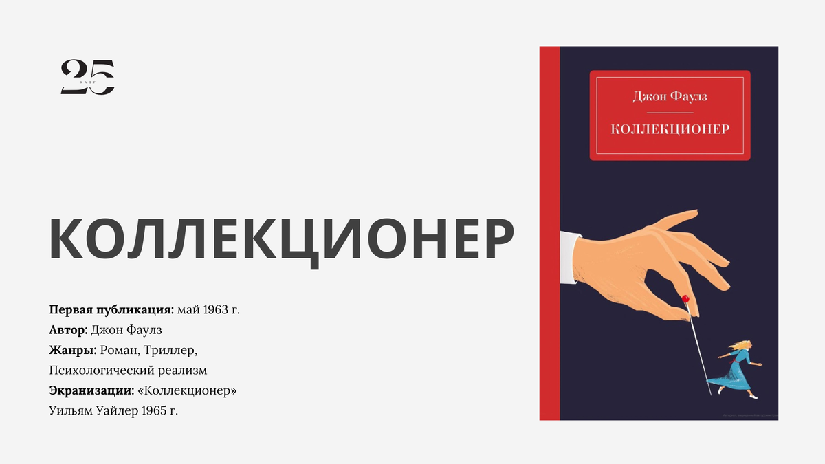 В последнее время я прочитала довольно много интересных романов, но «Коллекционер» Джона Фаулза вызвал во мне настолько противоречивые чувства, что эта статья стала неизбежной. С самого начала Фаулз помещает читателя в сознании, казалось бы, обычного человека. Но с каждой новой страницей, нам становится все сложнее определить, где черное, а где белое, кто хороший, а кто плохой.