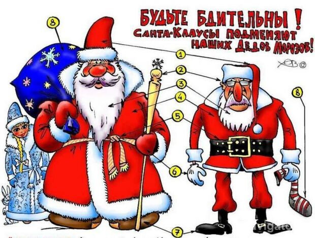 Санта-Клаус: Санта-Клаус - это персонаж, который стал популярным в Северной Америке и большей части англоязычного мира. Он является американской интерпретацией Святого Николая и был создан на основе различных европейских традиций, включая голландского Синтеркласа. Санта-Клаус известен своим красным костюмом, белой бородой и сумкой с подарками, которые он доставляет детям в Рождество.
