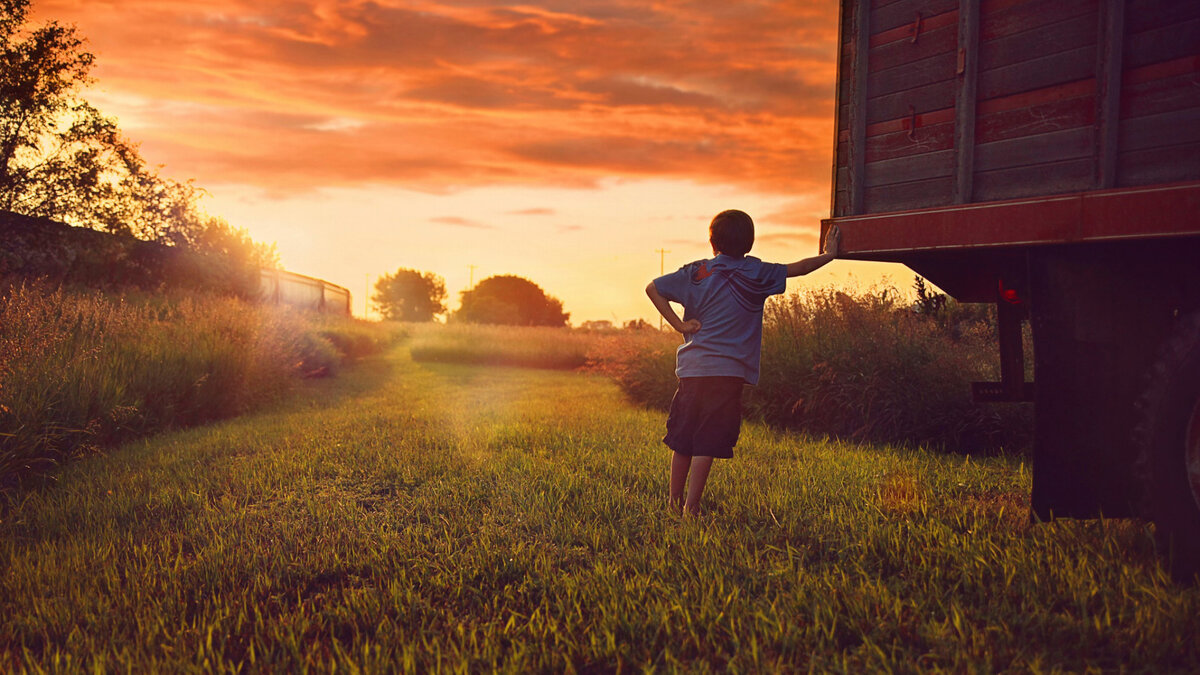 Пустынный двор, разрезанный оврагом, Зарос бурьяном из конца в конец. Вот по двору неторопливым шагом Идет домой с завода мой отец. Лежу я в старой тачке, и спросонья Я чувствую — отцовская рука Широкою горячею ладонью Моих волос касается слегка. Заходит солнце. Небо розовато. Фабричной гарью тянет. Но вовек Не будет знать прекраснее заката Лежащий в старой тачке человек. Самуил Маршак
