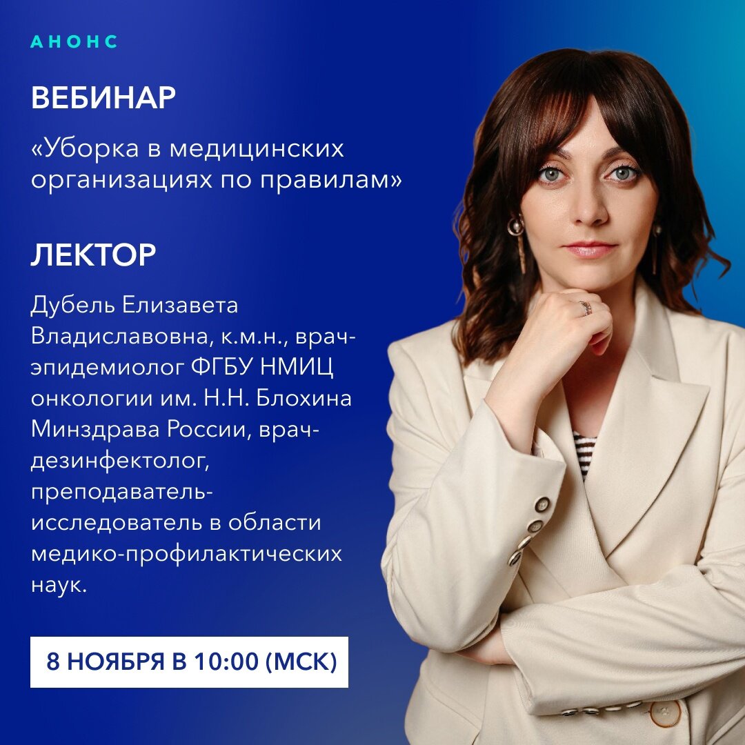 8 ноября в 10:00 пройдет вебинар: «Уборка в медицинских организациях по правилам» 🧹🏥 Эксперт Елизавета Дубель расскажет, как не получить на штраф при проверках Роспотребнадзора, а также: