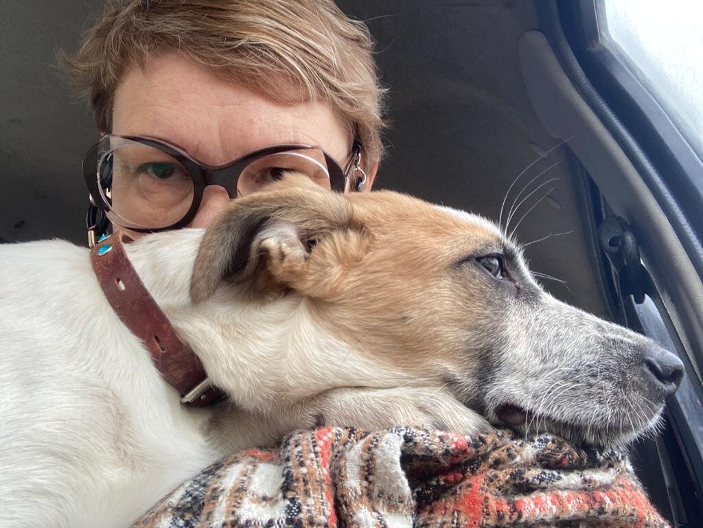 И я неожиданно понимаю, что щеночек-то подрос. Когда он у меня на коленях сидит, то как раньше машину-то уже не поведешь. Скоро вот так сядет псыночек на колени и всё лобовое стекло собой загородит.