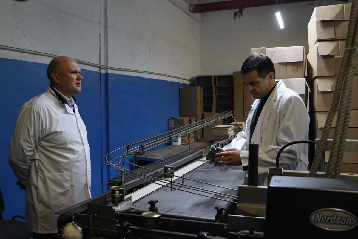 Компания, о которой расскажем сегодня, на рынке Хакасии уже пять лет. В ассортименте 11 видов продукции: консервы из мяса говядины, свинины, конины, баранины, каши с мясом. Гордость предприятия — хакасские и тувинские национальные блюда: хан, консервы из субпродуктов — языка, печени, сердца. Основано предприятие было в Туве, но несколько лет назад, когда обороты начали расти, открыли производство на мощностях мясоконсервного комбината в Абакане. Вот что рассказал главе города Алексею Лемину и заместителю главы Веронике Виницыной руководитель предприятия Константин Аёшин: — У нас есть свой покупатель: нас любят, нас знают, нас выбирают. В этом году у предприятия юбилей, мы планируем продолжать добиваться высоких результатов, вводим новые продукты: говядину с брусникой, с кедровым орехом, с клюквой, с грибами, с папоротником. Рецептура традиционная, и это еще один повод для гордости руководства компании: в баночках данного производителя только мясо и специи — соль, перец, лук, лавровый л