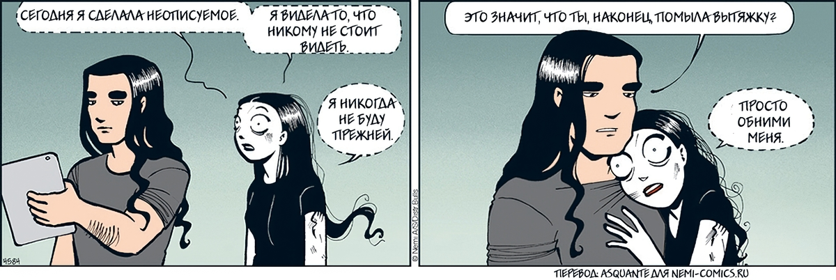 Норвежская художница Лисе Мюре (Lise Myhre) занимается не только комиксами, но и иллюстраций. В цикле ее работ очень много иллюстраций к произведениям Эдгара Алана По и Андре Бьерке. Поэтому неудивительно, что самым успешным персонажем Лисе стала придуманная ею готическая девушка. Кто такая Неми Комиксы о Неми можно считать долгожителями. Впервые Лисе нарисовала свою девушку-гота в 1997 году. Причем это была первая попытка художницы создать персонажа-человека. До этого действующими лицами ее историй были крысы, крокодилы и прочая живность. Неми сразу активно включилась в работу. Сначала это были эпизодические появления в разных работах, а в 2000 году девушка-гот получила сольный альбом. Лисе довольно долго выбирала имя для своей новой героини. Ей хотелось подобрать что-нибудь краткое, легкое для произношения носителями самых разных языков, красивое и легко запоминающееся. В результате ее выбор пал на Неми — название живописного озера в Италии. У этого озера интересная и зловещая ист