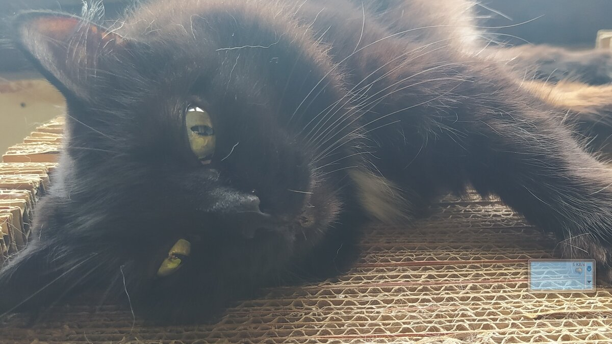 Кошка Чернуха забралась на второй этаж нового домика на лоджии и лёгким, дружеским пинком попыталась подвинуть развалившегося кота Беляшика: