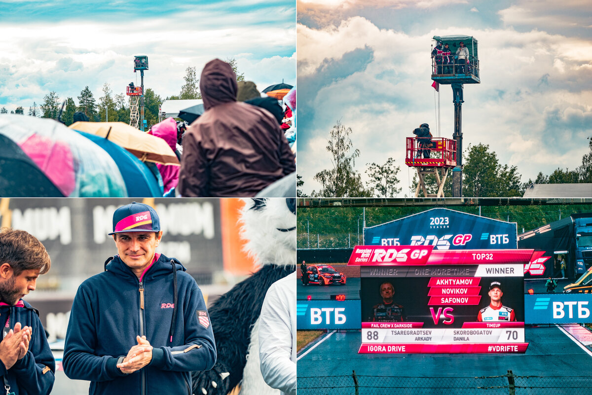 Жирные трансляции сочетают кадры со стационарных камер, дронов и GoPro, установленных внутри и снаружи машин участников. Зоны скольжения в дрифте располагаются максимально близко к зрительским трибунам, там же расположены гигантские экраны с трансляциями.
