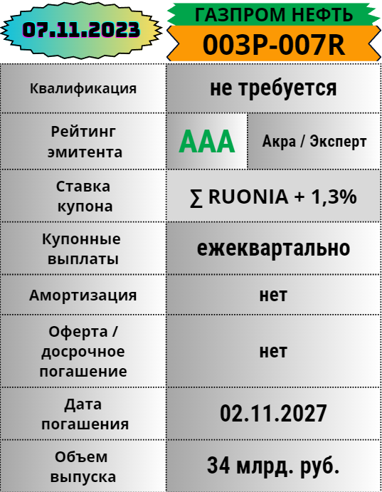 1️⃣ ГАЗПРОМ НЕФТЬ открывает биржевые размещения этой короткой трудовой недели. Компания в представлении не нуждается, а вот то, как она обращалась со своими долгами, подскажет история размещений. Миллиарды считать не буду, погибну в них, а вот историю выпусков проанализировать несложно: 49 раз обращалась компания за помощью. 21 выпуск был погашен, 16 штук аннулированы, 11 в обращении. Плюс наш сегодняшний герой, выходящий на биржу. Вроде правильно посчитал 😊. На самом деле в качестве домашнего задания поручаю себе разобраться с причинами аннулирования выпусков, но об этом в другой раз как-нибудь.