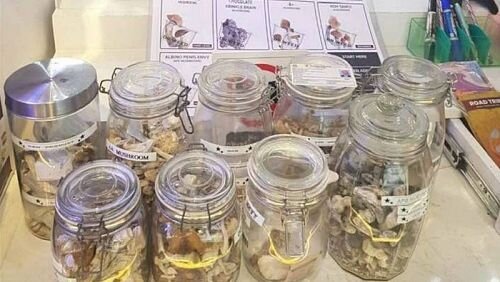 Помимо галлюциногенных грибов, полиция изъяла девять емкостей с психоактивными грибами семи разных сортов, а также прейскурант, содержащий описание продукции. Общий объем изъятых грибов составлял 275 грамм: