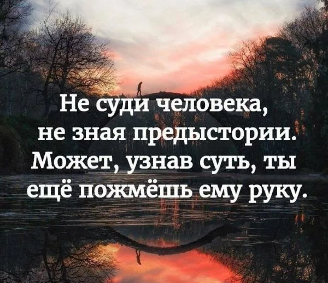 Перед нами два предложения. ● Не суди человека, /не зная предыстории/. 👉 Это односоставное определённо-личное предложение с одним главным членом - сказуемым НЕ СУДИ. 👉 Сказуемое простое глагольное; выражено глаголом в форме повелительного наклонения. 👉 Предложение осложнено обособленным обстоятельством, ввраженным деепричастным оборотом. 👉 Не _ зная - НЕ с деепричастием пишется раздельно. ПредЫстория - после русских приставок, оканчивающихся на согласный, пишется Ы. ● Может, /узнав суть/, ты ещё пожмёшь ему руку. 👉 Это простое двусоставное предложение (есть оба главных члена предложения). 👉 В начале предложение использовано вводное слово МОЖЕТ (обособляется). 👉 Кроме того, предложение осложнено обособленным обстоятельством, выраженным деепричастным оборотом /узнав суть/. 👉 Ещё - ё на конце данного наречия следует запомнить. Пожмёшь - глагол 2 лица ед.числа (ты) пишется с мягким знаком в окончании.