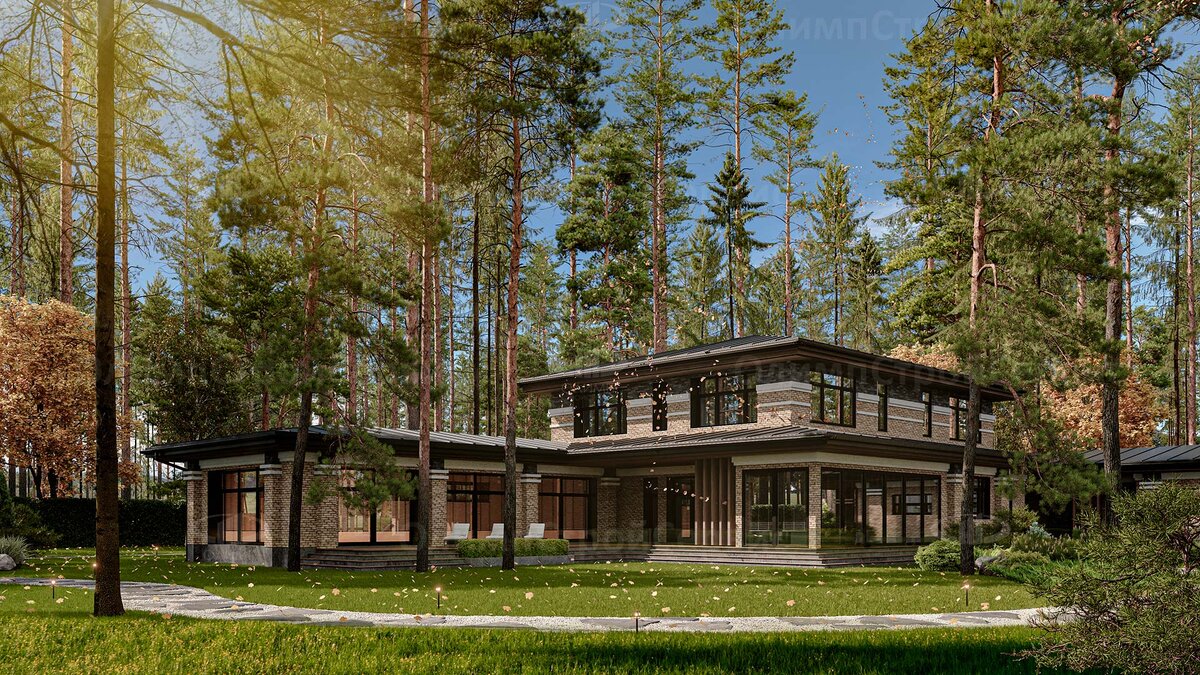 Общая площадь - 1000 м²; габариты - 36,6 м. х 42,5 м.; 5 спален; 6 санузлов, с навесом на 2 машины, сауна, крытая и открытая терраса.