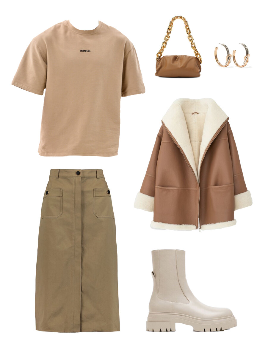 С приходом осени, наша одежда начинает меняться, но это ещё не повод забывать о тренде и стиле. Наши рекомендации для гармоничного и уютного осеннего образа включают в себя несколько ключевых элементов, которые выделят вас среди толпы. 1. Футболка HUNKIS: Наша футболка от бренда HUNKIS - отличный выбор для осеннего гардероба. Сочетание комфорта и стиля, она великолепно вписывается в данный образ. 2. Юбка карго макси: Добавьте женственности и нежности вашему образу с юбкой карго макси. Эта модель позволяет сочетать стиль и комфорт. 3. Кожаная куртка на меху: Чтобы не дать осенней прохладе шанса, выберите стильную кожаную куртку на меху. Она не только придаст вам тепло, но и станет ярким акцентом образа. 4. Ботинки челси: Ботинки челси - абсолютный хит сезона. Они придают образу стильность и женственность, идеально сочетаясь с другими элементами. 5. Золотые аксессуары и сумки: Для завершения вашего осеннего образа не забудьте про аксессуары. Золотые украшения и сумки с золотыми вставками