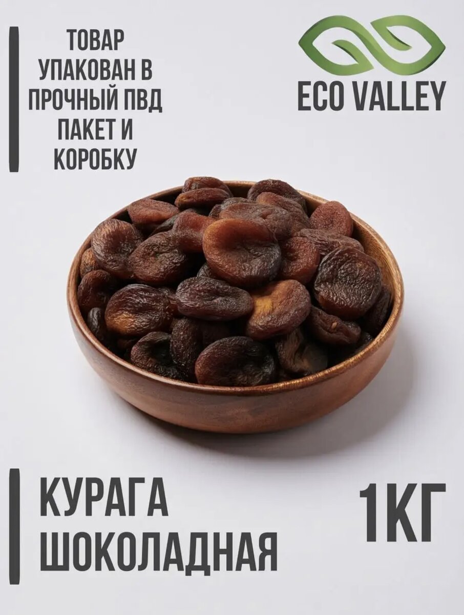 Курага имеет коричневый цвет, и сладкий вкус без кислинки, за что получила в народе название "шоколадная". Без сахара, консервантов, красителей и ароматизаторов.