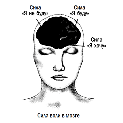 Учёные нейробиологи путём многочисленных экспериментов выяснили, что в ходе эволюции мозг распределил в префронтальной коре три области, отвечающие за основные задачи "Я буду", "Я не буду", "Я хочу".