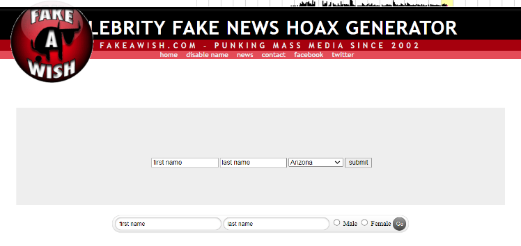 Подобный вид фейка в современном варианте появился около десяти лет назад в Соединенных Штатах Америки, создание таких историй приписывались сайту Fake a Wish, «генератору мистификаций фейковых новостей о знаменитостях», с помощью которого любой пользователь мог создавать «новости» и приписывать их веб-сайту, известному как Global Associated News.