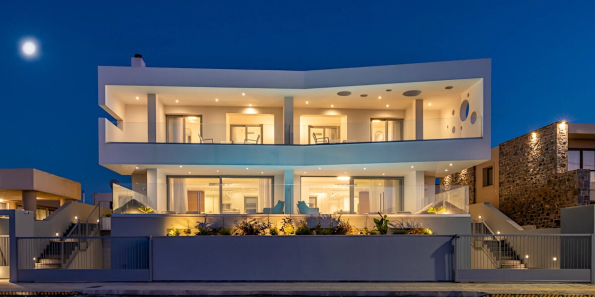 Dia's Blue - это роскошная вилла на берегу с потрясающим видом на Средиземное море. Вилла площадью 320 кв.м. расположена всего в нескольких шагах от пляжа в очень престижном районе Гувес, на острове Крит. Проект был разработан известными архитекторами из Греции: Никосом Мурелосом и Марией Перволараки. Прекрасные виды на море открываются благодаря современной архитектуре и множеству стеклянных дверей. Площадь открытого пространства составляет 400 кв.м., включая бассейн, барбекю и террасу, где есть все необходимое для обедов на свежем воздухе. "Архитектор Мария Перволараки часто выбирает дверные ручки M&T для своих проектов, мы давно работаем вместе. Как авторизованные дистрибьюторы M&T в Греции, мы обеспечиваем высокое качество изготовления дверной и оконной фурнитуры в проекте. В частности, в Dia's Blue установлено 18 пар межкомнатных дверных ручек Promo из высококачественной нержавеющей стали и 2 пары с механизмом M 2013 на входных дверях. Это был отличный выбор, учитывая соотношени