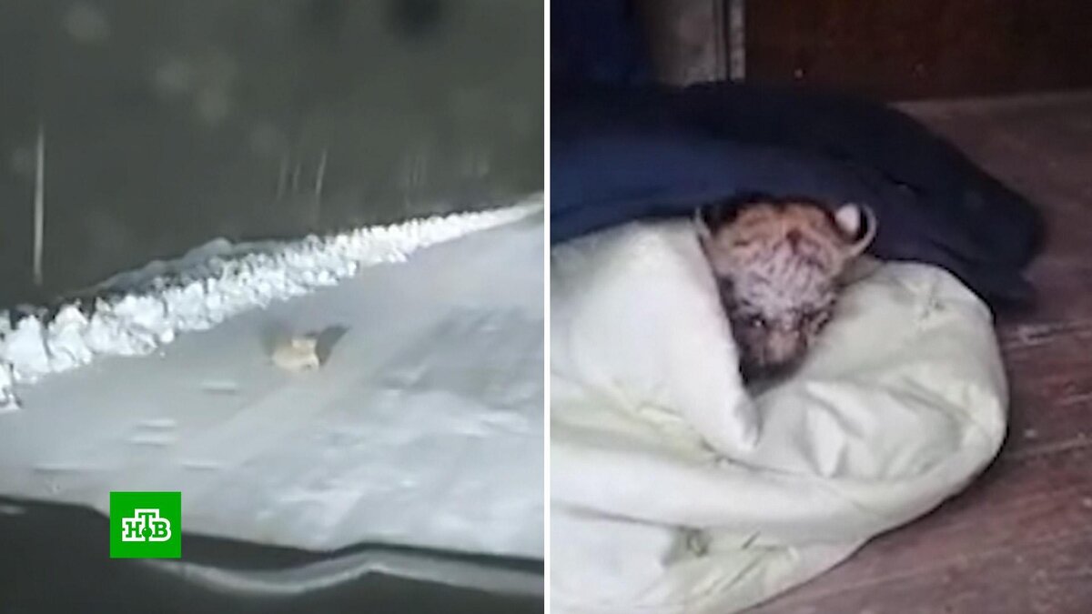 [ Смотреть видео на сайте НТВ ] Водители нашли тигренка со сломанной лапой на трассе Хабаровск — Комсомольск-на-Амуре. Жертвой непогоды в Хабаровском крае едва не стал краснокнижный амурский тигренок. Раненого и истощенного малыша нашли на трассе. В ветклинике, куда привезли котенка, выяснилось, что ему четыре месяца. У тигренка повреждена лапа. Уже назначено лечение, в будущем понадобится реабилитация, но дело, в виду возраста подопечного, сложное, говорят специалисты. Что именно с ним произошло и куда исчезла его мать — неизвестно, хабаровская метель засыпала на трассе все следы. [ Смотреть видео на сайте НТВ ]